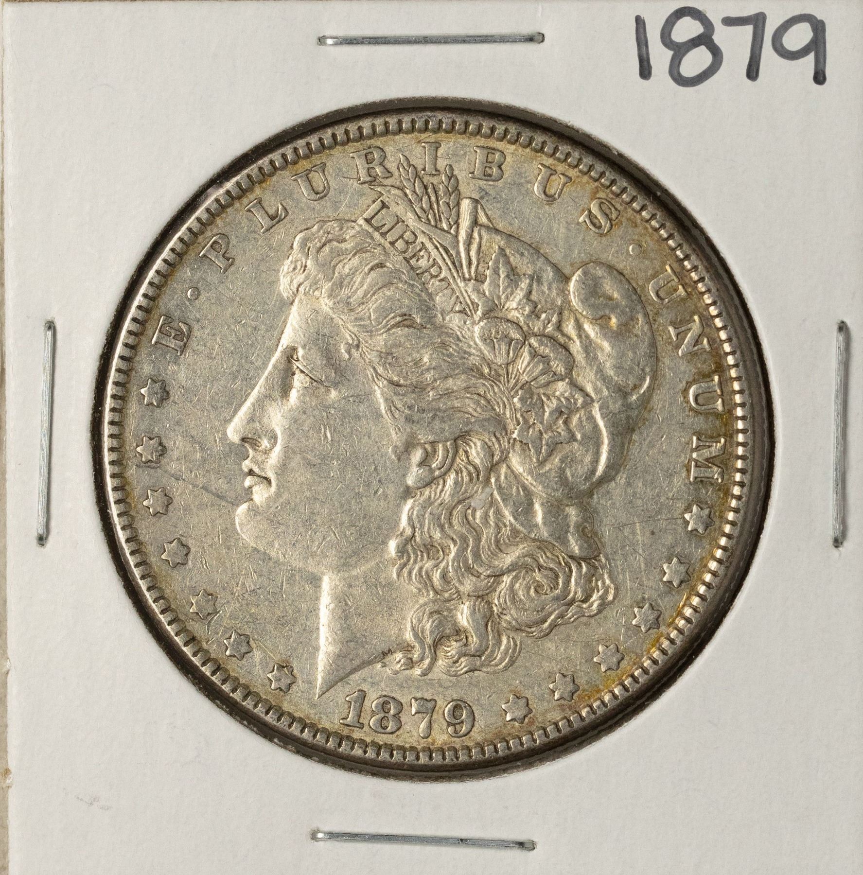 One 1879 $1 Morgan Silver Dollar Coin.