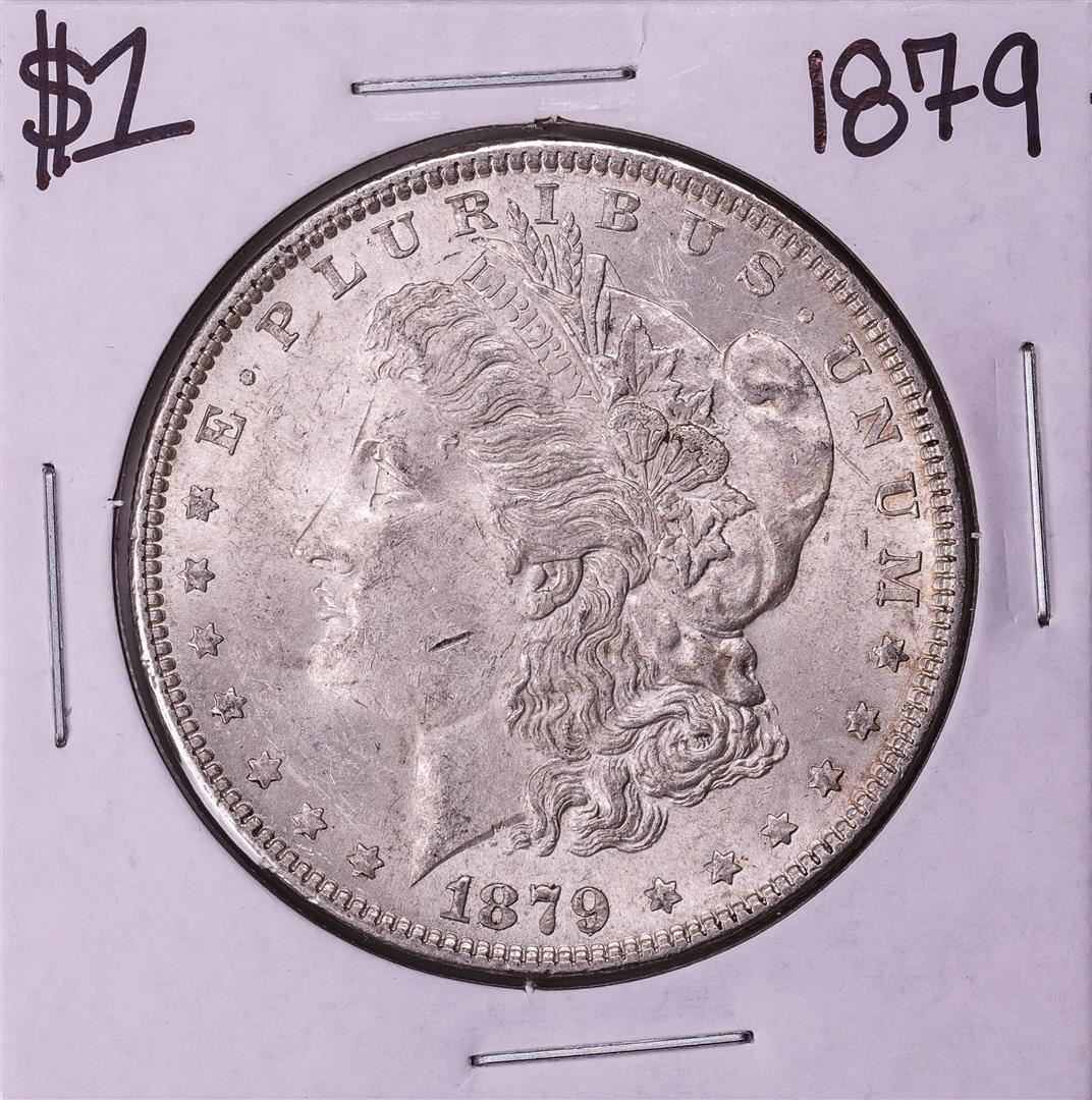 One 1879 $1 Morgan Silver Dollar Coin.