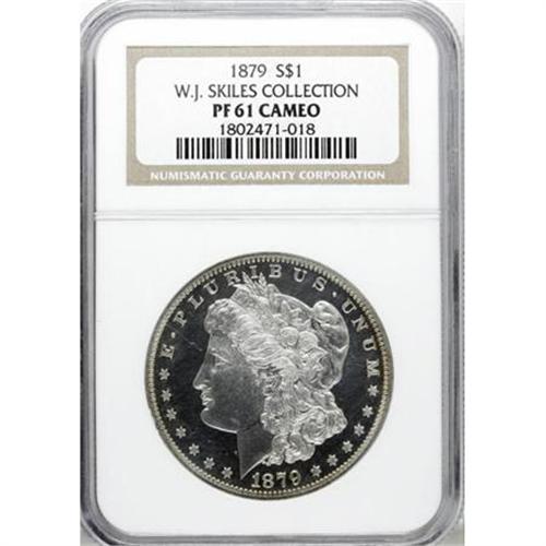<B>1879 $1 PR61 Cameo NGC.</B></I> Ex: W.J. Skiles Collection. Well struck with watery, deeply mirrored fields and pristine, beautifully frosted devices. Wispy hairlines are present, but are only visible from selected angles.<BR><BR><b>Shipping:</b> Coins & Currency (<a target="_blank" href="http://www.heritageauctions.com/common/shipping.php">view shipping information</a>)