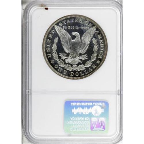 <B>1879 $1 PR66 Cameo NGC.</B></I> Stunning field-motif contrast projects from both sides of this Premium Gem Cameo, each of which displays speckles of milky-gray and sky-blue that gravitate to the borders. Well struck, with nicely preserved surfaces. Liberty's face and neck are remarkably clean. Census: 30 in 66 Cameo, 22 finer (3/08).<BR><BR><B>Coin Engraver:</B> George T. Morgan<BR><BR><b>Shipping:</b> Coins & Currency (<a target="_blank" href="http://www.heritageauctions.com/common/shipping.php">view shipping information</a>)