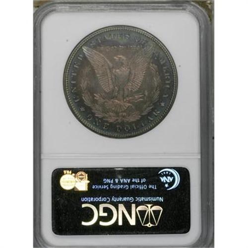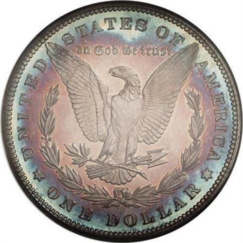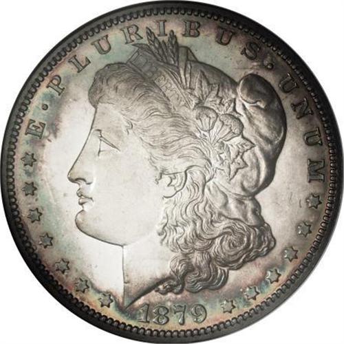 <B>1879 $1 PR66 NGC.</B></I> Purple, forest-green, and yellow-gold patination concentrates at the obverse margins of this Premium Gem proof, leaving the central area essentially brilliant. Concentric rings of cobalt-blue and lavender on the reverse borders frame the golden-tan center on the reverse. Both sides exhibit a relatively sharp strike, and are well preserved. Census: 30 in 66, 22 finer (1/08).<BR><BR><B>Coin Engraver:</B> George T. Morgan<BR><BR><b>Shipping:</b> Coins & Currency (<a target="_blank" href="http://www.heritageauctions.com/common/shipping.php">view shipping information</a>)