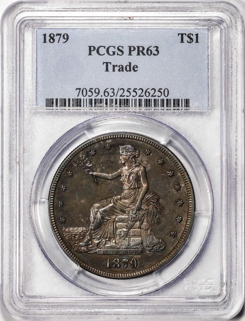 One 1879 $1 Proof Trade Silver Dollar Coin PCGS PR63. PCGS Graded.