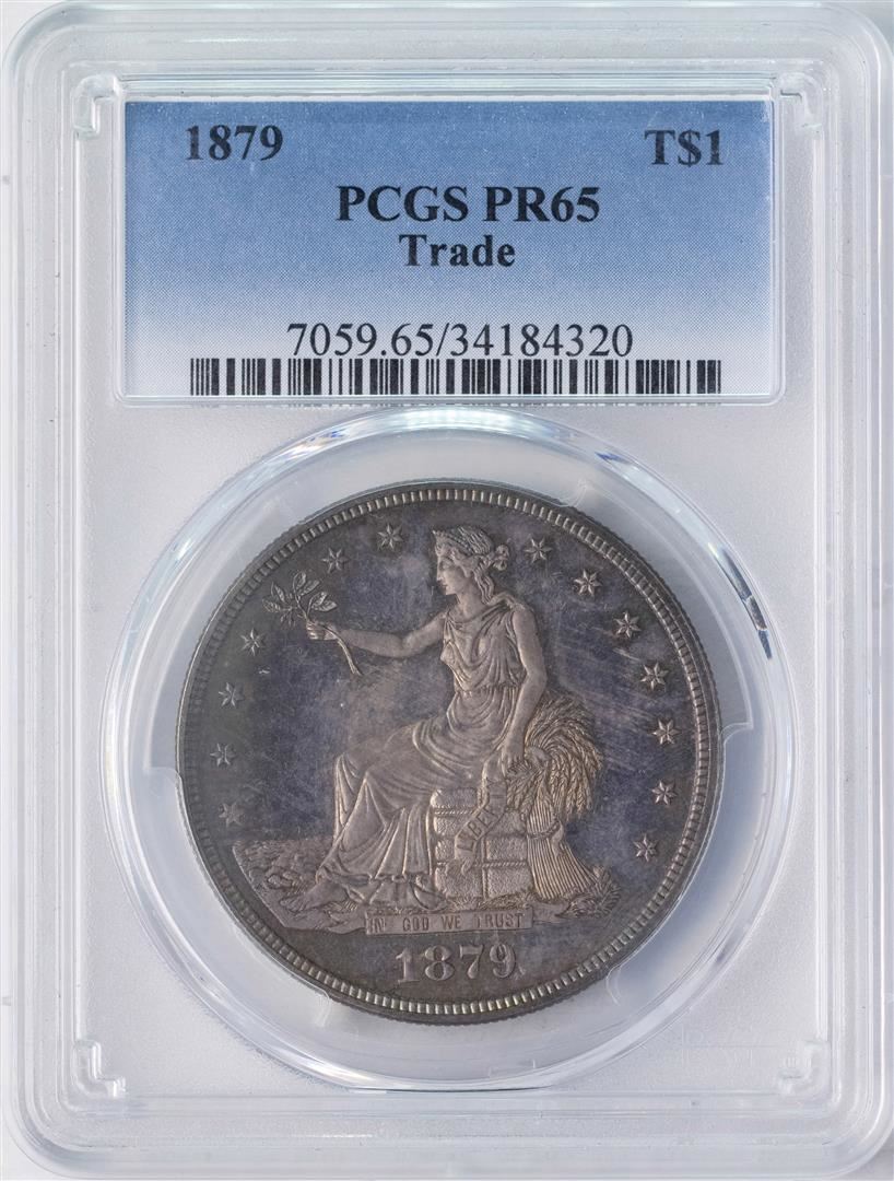 One 1879 $1 Proof Trade Silver Dollar Coin PCGS PR65. PCGS Graded.
