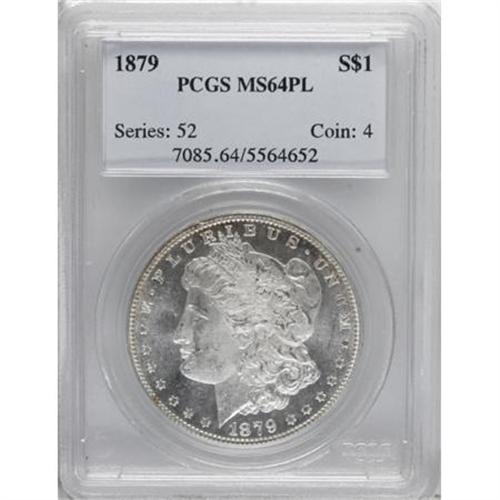 <B>1879 $1 MS64 Prooflike PCGS.</B></I> PCGS Population (79/12). NGC Census: (84/13). Numismedia Wsl. Price for NGC/PCGS coin in MS64: $152. (#7085)<BR><I>From The Diamond Head Registry Set of Prooflike Dollars.</B></I><BR><BR><B>Coin Engraver:</B> George T. Morgan<BR><BR><b>Shipping:</b> Coins & Currency (<a target="_blank" href="http://www.heritageauctions.com/common/shipping.php">view shipping information</a>\)