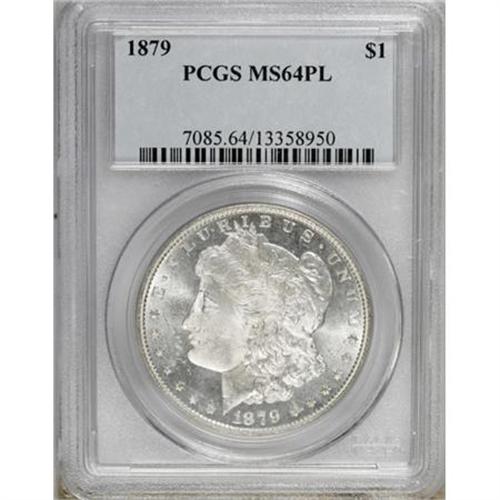 <B>1879 $1 MS64 Prooflike PCGS.</B></I> PCGS Population (84/13). NGC Census: (87/14). Numismedia Wsl. Price for NGC/PCGS coin in MS64: $152. (#7085)<BR><BR><B>Coin Engraver:</B> George T. Morgan<BR><BR><b>Shipping:</b> Coins & Currency (<a target="_blank" href="http://www.heritageauctions.com/common/shipping.php">view shipping information</a>)