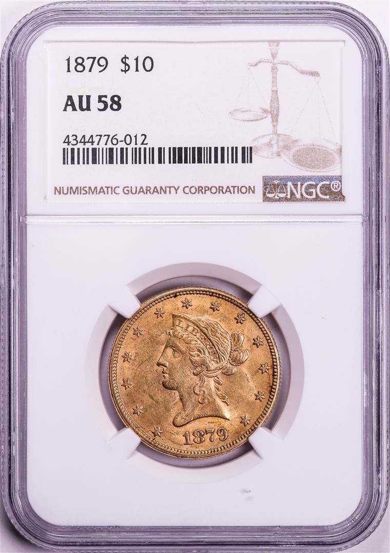 One 1879 $10 Liberty Head Eagle Gold Coin NGC AU58. NGC Certified.