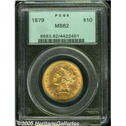 <B>1879 $10 MS62 PCGS.</B></I> Peach-gold surfaces reveal nice luster and sharply struck design elements. A few minute contact marks and luster grazes are visible on each side.