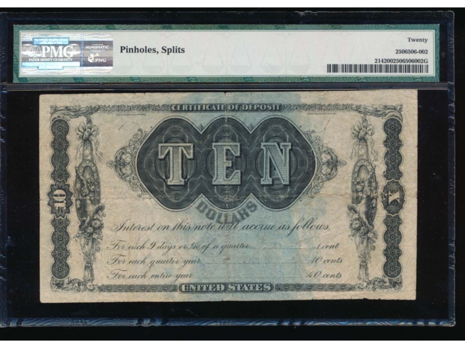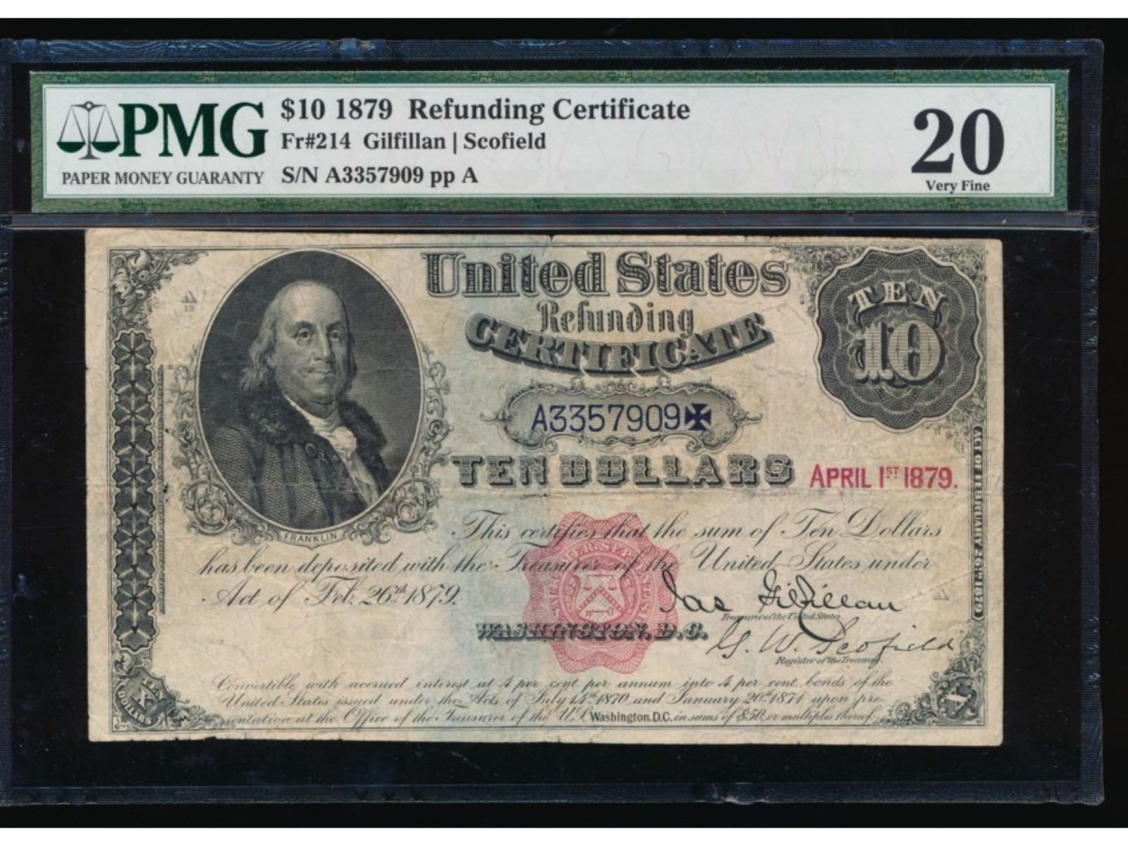 One 1879 $10 Refunding Certificate PMG 20.