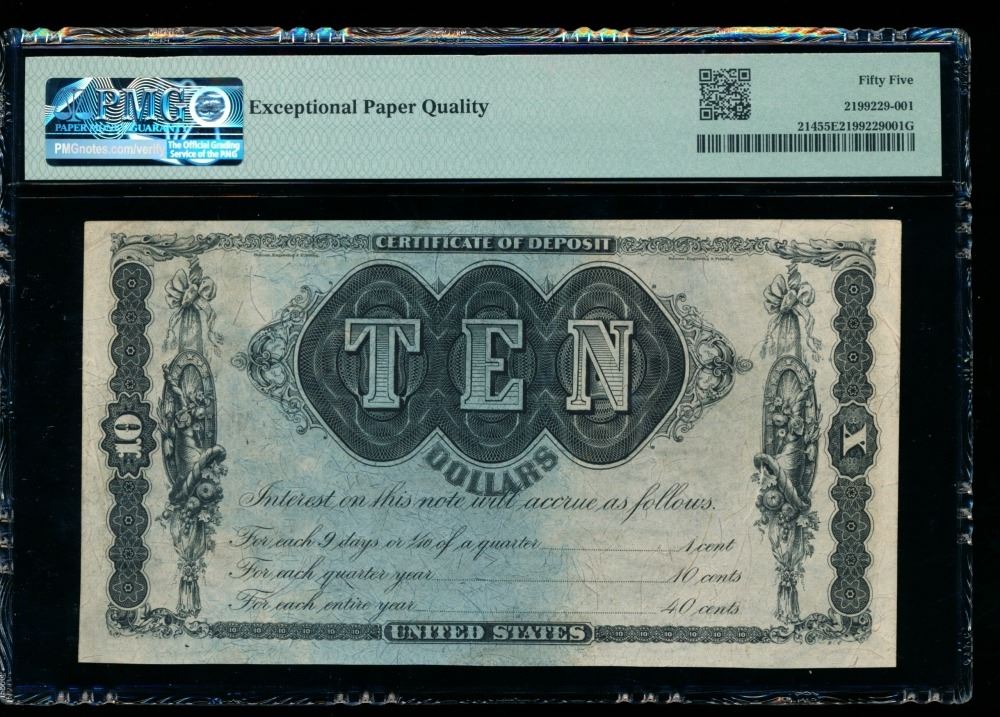 One 1879 $10 Refunding Certificate PMG 55EPQ.