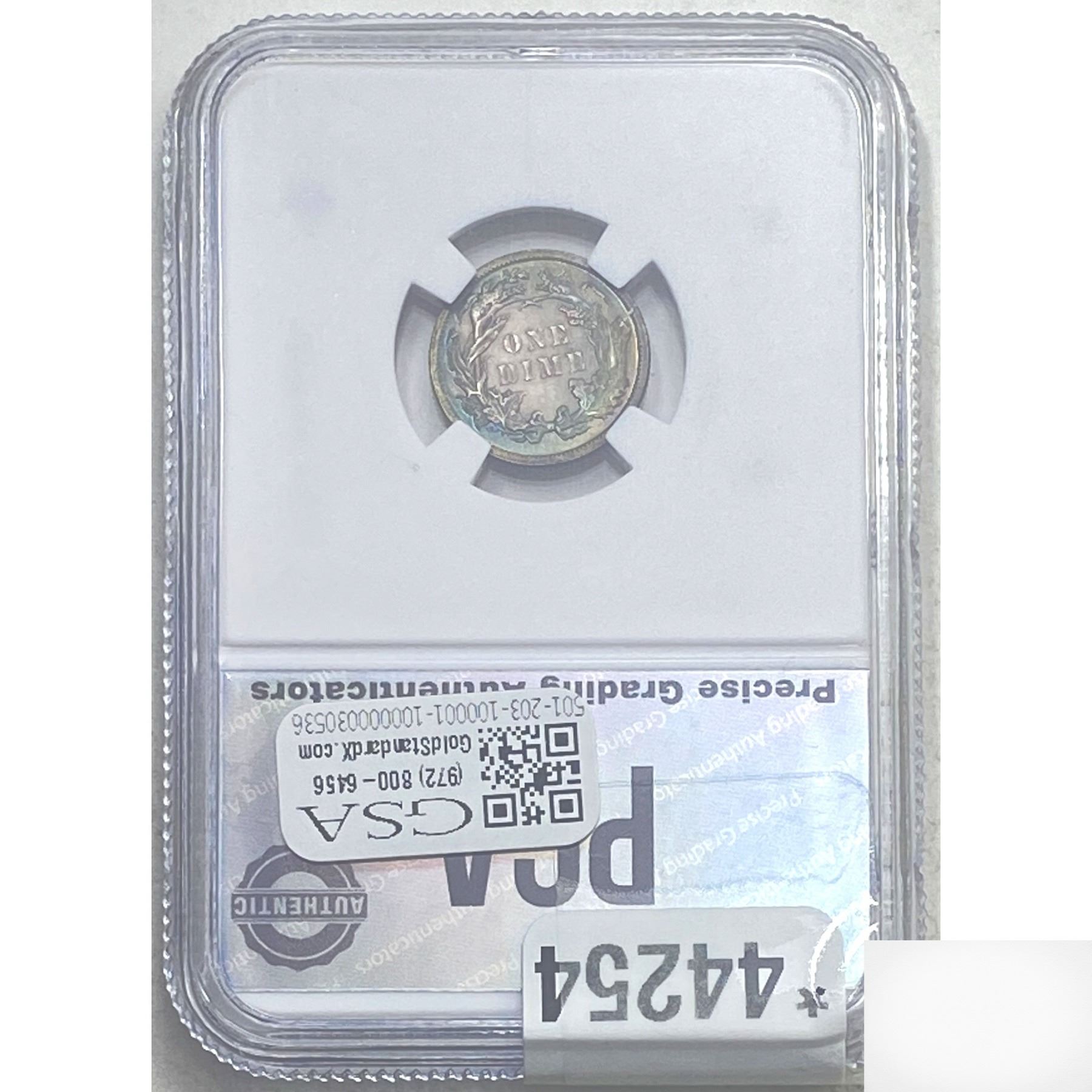l. All non-certified coins and currency are guaranteed genuine, but are not guaranteed as to grade, since grading is a matter of opinion, an art and not a science, and therefore the description rendered by GSA or any third-party grading service may not agree with the opinion of others (including trained experts), and the same expert may not grade the same item with the same grade at two different times. GSA may, but is not obligated to, express an opinion as to non-certified numismatic items, in GSA’s opinion, or by its employees’ experience and the current interpretation of the American Numismatic Association’s standards as of the date the catalog was prepared. There is no guarantee or warranty expressed or implied that the grading opinions utilized by GSA, if any, will meet the standards of any grading service at any time in the future.