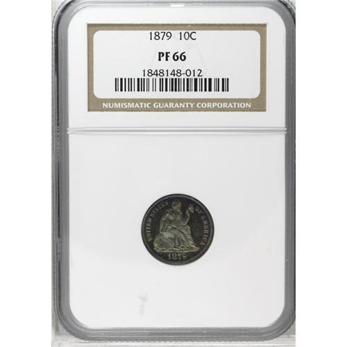 1879 10C PR66 NGC. Lavender, cobalt-blue, and light go 1879