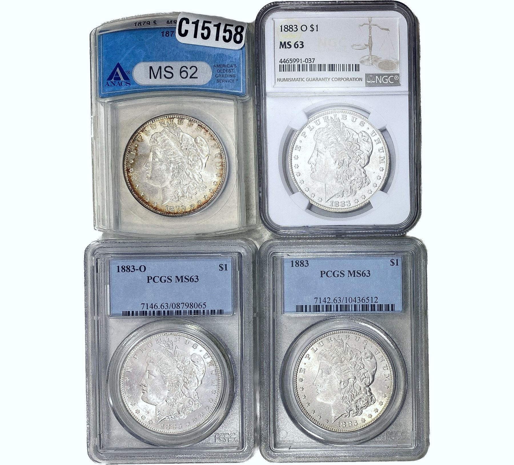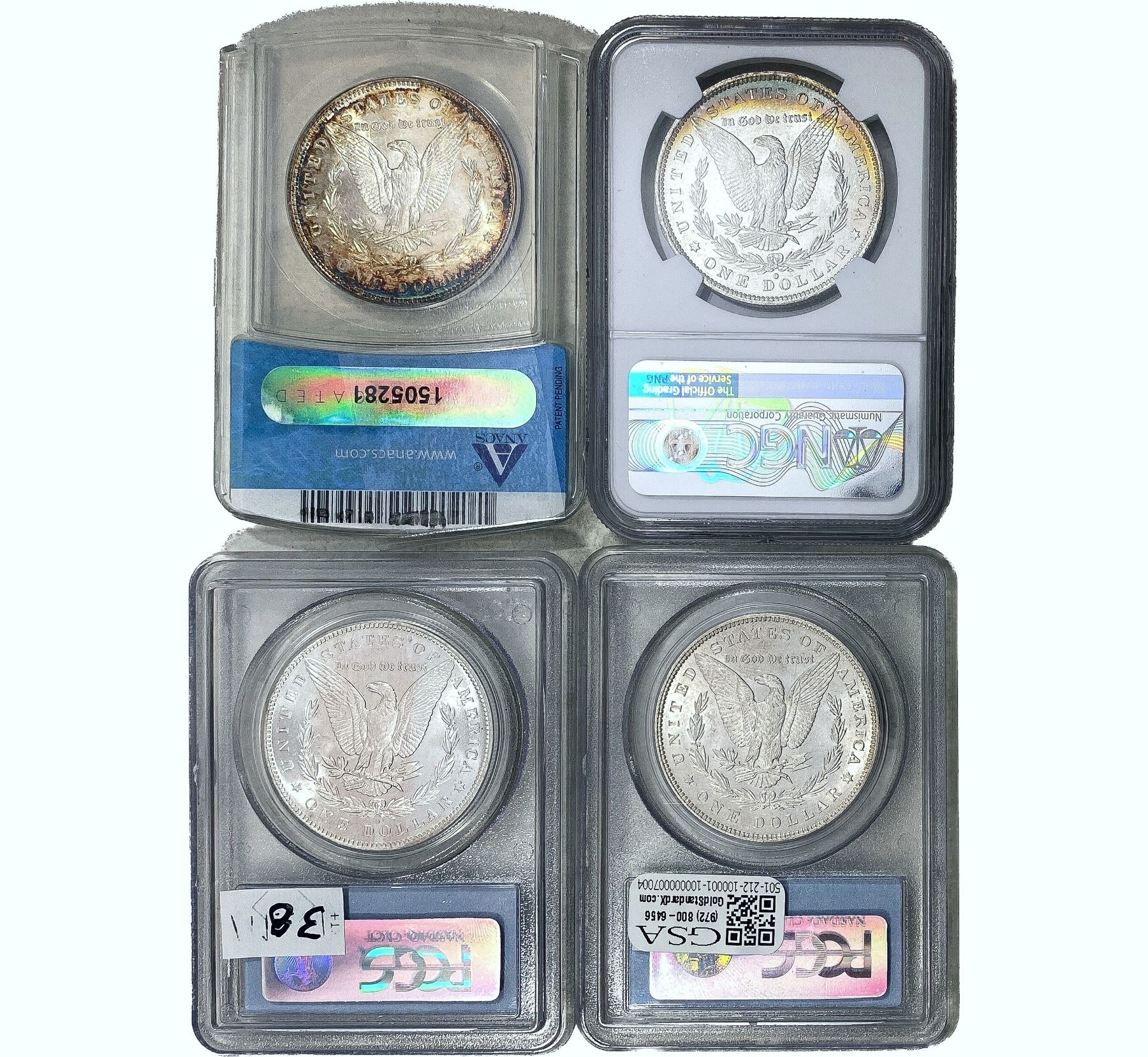 1879-1883 GEM BU Morgan Silver Dollar [4 Coins] NGC/ANACS/PCGS MS62/63