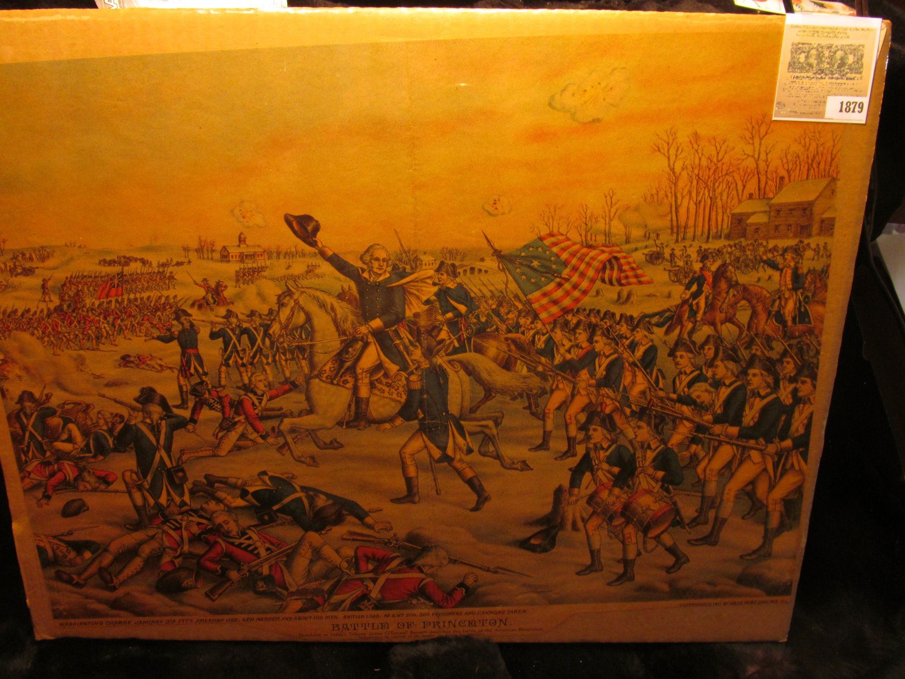 1879 _ 1911 Print of "Battle of Princeton" mounted, depicts George Washington mounted on a horse.