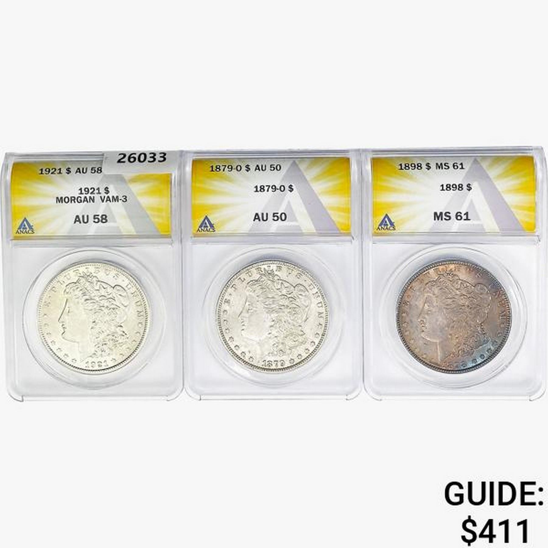 1879-1921 [3] Morgan Silver Dollar ANACS AU/MS