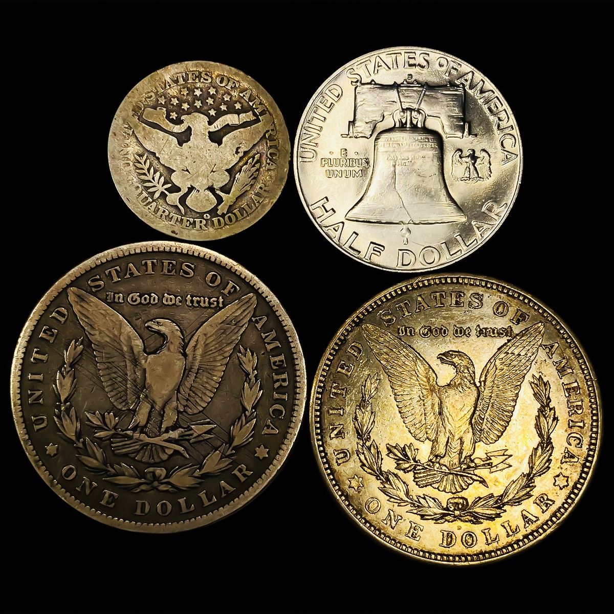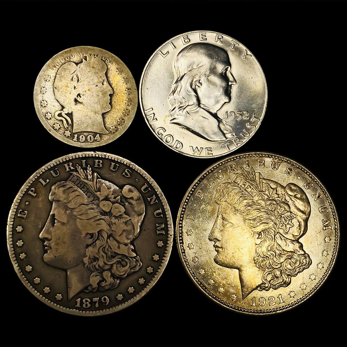 1879-1952 25C Barber, 50C Franklin, $1 Morgans