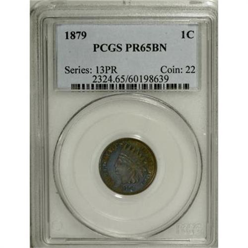 <B>1879 1C PR65 Brown PCGS.</B></I> PCGS Population (5/4). NGC Census: (24/8). Mintage: 3,200. Numismedia Wsl. Price for NGC/PCGS coin in PR65: $252. (#2324)<BR><BR><B>Coin Engraver:</B> James B. Longacre<BR><BR><b>Shipping:</b> Coins & Currency (<a target="_blank" href="http://www.heritageauctions.com/common/shipping.php">view shipping information</a>\)