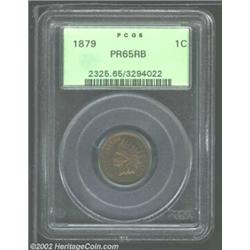 1879 1C PR65 Red and Brown PCGS. Snow-1, "scarce." The 1, 8, and 9 in the date betray evidence of a prior logotype. Rich gold, ruby-red, and sea-green colors. A razor-sharp Gem whose only surface disturbance is a tiny planchet flaw (as made) below NT in CENT. Important notice: We expect to be auctioning lots at the rate of 200-250 per hour. Sometimes eBay Premier live bid software cannot keep up with that pace, so we strongly recommend that you place a realistic proxy bid now as insurance to avoid disappointment. Also please note that all Heritage/CAA lots purchased through eBay Premier carry a 20% Buyer's Premium. Please make sure you read the Terms and Conditions.