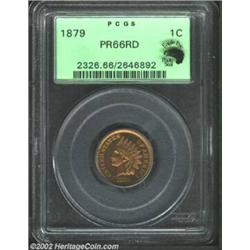 1879 1C PR66 Red PCGS. Eagle Eye Photo Seal. Snow-1. This is the scarcer variety that shows repunching on both the 8 and 9 in the date. The surfaces are bright and sparkling with even medium red color on each side. Although not designated as such, the devices are lightly frosted and display a mild cameo contrast on both obverse and reverse.From the "Newmismatist" Collection; the All-Time #1 PCGS Registry Set. Important notice: We expect to be auctioning lots at the rate of 200-250 per hour. Sometimes eBay Premier live bid software cannot keep up with that pace, so we strongly recommend that you place a realistic proxy bid now as insurance to avoid disappointment. Also please note that all Heritage/CAA lots purchased through eBay Premier carry a 20% Buyer's Premium. Please make sure you read the Terms and Conditions.