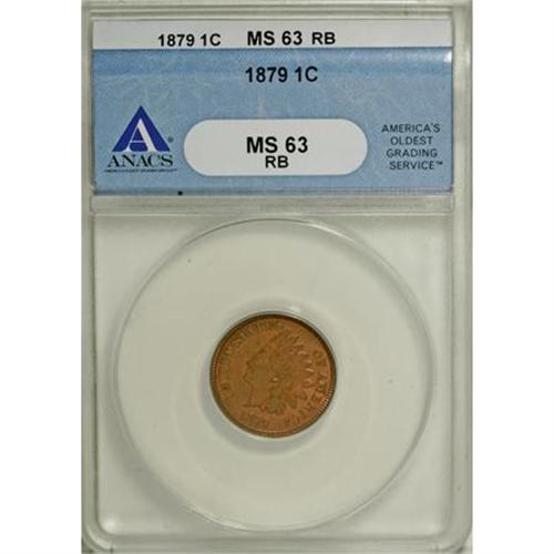 <B>1879 1C MS63 Red and Brown ANACS.</B></I> NGC Census: (41/285). PCGS Population (122/267). Mintage: 16,231,200. Numismedia Wsl. Price for NGC/PCGS coin in MS63: $108. (#2134)<BR><BR><B>Coin Engraver:</B> James B. Longacre<BR><BR><b>Shipping:</b> Coins & Currency (<a target="_blank" href="http://www.heritageauctions.com/common/shipping.php">view shipping information</a>)