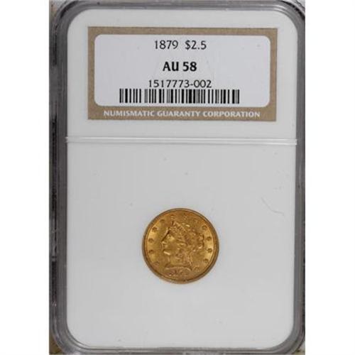 1879 $2 1/2 AU58 NGC. NGC Census: (98/464). PCGS P