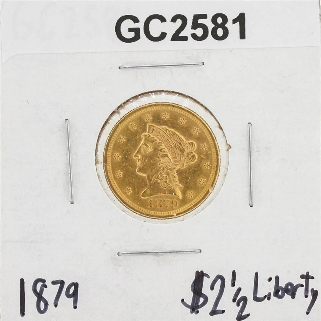One 1879 $2.50 Liberty Heard Quarter Eagle Gold Coin.