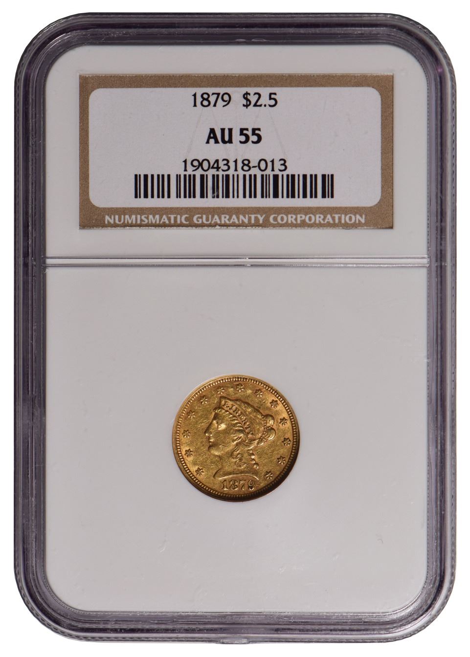 One 1879 $2.5 Liberty Quarter Eagle Gold Coin NGC AU55.