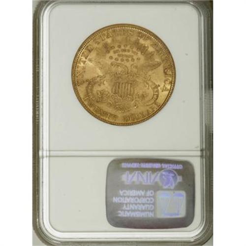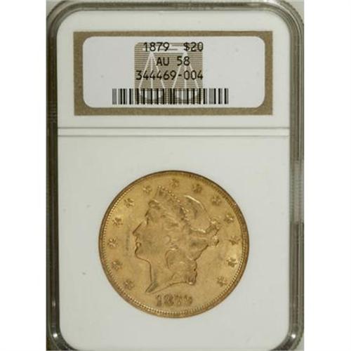 <B>1879 $20 AU58 NGC.</B></I> NGC Census: (192/196). PCGS Population (77/130). Mintage: 207,630. Numismedia Wsl. Price for NGC/PCGS coin in AU58: $685. (#8988)<BR><BR><B>Coin Engraver:</B> James B. Longacre<BR><BR><b>Shipping:</b> Coins & Currency (<a target="_blank" href="http://www.heritageauctions.com/common/shipping.php">view shipping information</a>\)