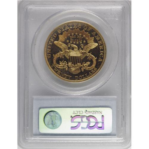 <B>1879 $20 Liberty Head Quintuple Stella, Judd-1643, Pollock-1843, Low R.7, PR62 PCGS.</B></I> The obverse has the Liberty Head from the regular issue double eagle, although it does not appear to be the Type Three hub used for regular issue pieces. The standard diagonal die line from the hair to the left side of Y is not present, as it is on all regular issue pieces of the third design. The legend is a variation of the legend on the four dollar stella: * 30 * G * 1.5 * S * 3.5 * C * 35* G * R * A * M * S *. The date is below the bust and the initials J.B.L. are located on the bust truncation. The reverse is similar to the regular issue piece with an eagle and shield design, the legend E PLURIBUS UNUM on the scroll work to the left and right. Around, the legend UNITED STATES OF AMERICA, and below, the denomination TWENTY DOLLARS. An oval of stars and a glory of rays above the eagle contain the motto DEO EST GLORIA. It is this motto that is different from the regular design. Struck in gold with a reeded edge.<BR> Even the casual numismatist or collector is aware of the international experiment that is represented by the four dollar gold stella coinage. Although those pieces are patterns, they have been listed in the <I>Guide Book</B></I> since its first publication in 1946, and they are considered by some to be regular issue gold coins. Not nearly so well known are these "quintuple stellas," the 20-dollar version of the same coinage issue. Just five of these pieces are known in gold, along with 10 to 12 examples struck in copper. Among the five examples in gold are this piece, and another that is permanently part of the Smithsonian Institution holdings. The following pedigree is provided by Saul Teichman and USPatterns.com: <BR><BR><B>1. PR62 PCGS. The example offered here.</B></I> U.S. Mint; Dr. William Wheeler Hubbell; J.W. Haseltine (11/1881), lot 1490; Hebbeard Collection (H.P. Smith, 4/1883), lot 458; Dr. Edward Maris Collection (H.P. Smith, 6/1886), lot 230; Garrett Collection; Johns Hopkins University (Bowers and Ruddy, 3/1980), lot 1097; Ed Trompeter (Superior, 1/1989), lot 4026. Illustrated here.<BR><B>2. PR62 PCGS.</B></I> Virgil M. Brand; Amon Carter, Sr. and Jr. (Stack's, 1/1984), lot 635; Ed Trompeter (Superior, 2/1992), lot 138; Heritage Inventory (2/1999). Illustrated in the Trompeter catalog.<BR><B>3. Proof.</B></I> Virgil M. Brand; Adolphe Menjou (Numismatic Gallery, 3/1948), lot 1813; King Farouk (Sotheby's, 2/1954), lot 294; 1958 ANA, lot 1676; Auction '79 (Stack's), lot 950; Stack's; Smithsonian Institution (via gift of Stack's). Illustrated in the catalog for Auction '79. <BR><B>4. PR63 Cameo NGC.</B></I> Virgil M. Brand; Olsen Collection (B. Max Mehl, 11/1944), lot 624; Wilkison Collection; Paramount; A-Mark; New England Rare Coin Auctions (4/1980), lot 391; Stack's (10/2000), lot 1626. Illustrated on USPatterns.com and also in <I>Encyclopedia of U.S. Gold Coins 1795-1933</B></I> by Jeff Garrett and Ron Guth.<BR><B>5. PR64 NGC.</B></I> H.P. Smith; J.S. Jenks; Elmer Sears (possibly as agent for the next); J.M. Clapp; Clapp Estate; Louis E. Eliasberg, Sr.; Eliasberg Estate (Bowers and Merena, 5/1996), lot 313. Illustrated in the Eliasberg catalog.<BR><BR> Dr. William Wheeler Hubbell (aka Wheeler William Hubbell) was a citizen of Philadelphia with influence at the Mint. He had a keen interest in the various international coinage proposals of the time, and developed his "goloid" composition for the silver dollars, including a small amount of gold. His concept was a silver coin containing 90% precious metal and 10% copper. In New Orleans, <I>The Daily Picayune</B></I> reported on news in the U.S., including some pertinent information: "At the Philadelphia Mint, production of nickel three-cent pieces, Shield nickels, 20-cent pieces, and trade dollars was limited to Proofs for collectors; no business strikes were made for circulation. Goloid, a 'dream metal' patented by Dr. William Wheeler Hubbell on May 22, 1877, was employed to strike numerous pattern dollars beginning in 1878. This alloy contained silver and gold metal in the value ratio of 16 to 1, alloyed with 10% copper by weight (to add strength). Goloid coins were to be struck with weights and proportions on the metric system, hence the term <I>goloid metric dollar.</B></I>" At about the same time, Hubbell applied for a patent "for an improvement in metallic cartridges."<BR> This example is an extraordinary proof with brilliant yellow-gold color and orange tendencies. Nearly every feature is sharply defined; only a few stars along the left obverse border are weak. A few light hairlines keep it out of the choice proof category. When this piece was offered in the Garrett Collection sale, and later in Superior's sale of January 1989, it had a clearly visible spot above the star to the right of the date. That spot has been removed through careful conservation, and not a blemish appears in that area today. The following tiny blemishes combine to positively identify the pedigree of this example: a tiny nick on Liberty's eye brow, a minute flake below the 3 in 30, a small planchet flake between G and star 3, a small mark below the upper serif of E in TWENTY, and a tiny blemish at the right curve of the final S in STATES. All of these marks are clearly visible in the Garrett catalog plate, the Superior catalog plate, and on the present coin. The importance of this opportunity cannot be overemphasized. This is an extraordinary rare pattern issue, one of just four pieces available to collectors, and one of the few pattern coins struck in gold. It has an amazing pedigree, continuous back to the day it was made, and this is one of few specimens available to collectors with such a complete provenance.<BR><I>Ex: Garrett Collection with complete pedigree recorded above.</B></I><BR><I>From The Jones Beach Collection.</B></I><BR><BR><b>Shipping:</b> Coin/Currency (<a target="_blank" href="http://www.heritageauctions.com/common/shipp