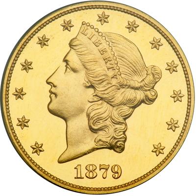 1879 $20 Liberty. PCGS graded Proof 64 Cameo. Primarily untoned with captivating mirrorlike cameo surfaces. Only 30 proofs minted. Pop 2; none finer at PCGS. Only 2 examples graded higher at NGC; 1 in 65CAM and 1 in 66CAM Star (PCGS # 89095).