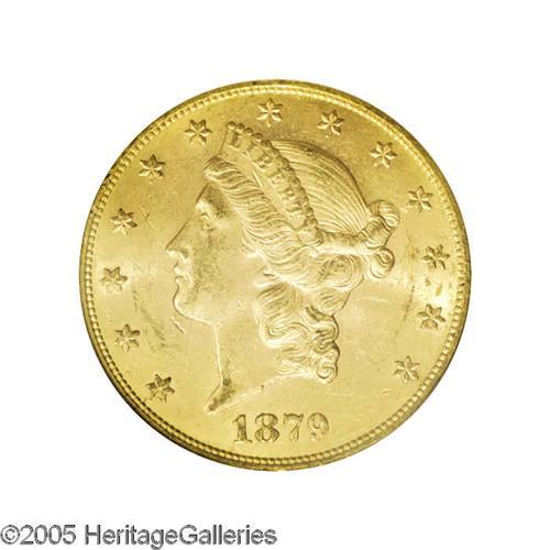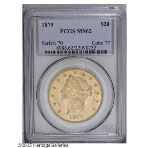 <B>1879<$20> MS62 PCGS.</B></I> A satiny and well struck Double Eagle. The cheek and left obverse field are not unduly abraded. A conditionally challenging issue; the mintage is six times smaller than the 1879-S Twenty. The portrait displays hints of soft gray patina.