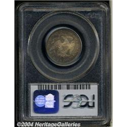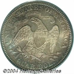<B>1879<25C> MS67 PCGS.</B></I> Struck from Reverse A, as seen by the tiny die chip between vertical stripes 4 and 5 on the reverse. Only 13,600 pieces were struck of this issue, the first of the low mintage dates from 1879 through 1890. This is a very pleasing and flashy example that displays rich sea-green and rose-golden toning with thick mint frost over each side. Very sharply struck, this coin is virtually unexcelled at this lofty grade level. Population: 23 in 67, 1 finer (3/04).<BR><I>Ex: Long Beach Bullet Sale (Heritage, 2/02), lot 517, which realized $3,450.</B></I><BR><I>From the JFS Collection.</B></I> <BR><BR><B>Important notice:</B> Heritage usually auctions material at the rate of 200-250 lots per hour. On some occasions eBay Live bid software or the Internet may not be able to keep up with the pace of the auction. We recommend placing a realistic absentee bid now as insurance to avoid disappointment. Occasionally the auctioneer may eliminate or reject an eBay Live bid, and the auctioneer may also reopen a lot after the close of the eBay live bidding (usually because we missed an audience bid), and may reject your bid even if it shows you as the winning bidder. By bidding via eBay Live, you agree that Heritage may award the lot to another bidder at its sole discretion under the circumstances described above or any other reasonable circumstances. Since eBay bids are not shown to us until we open the lot on the floor, we treat those bids just like floor bids. In most cases the floor responds before the eBay bid is presented to us, due to Internet lag time, so for consistency we have made it a policy that floor bids are always considered first over tie eBay live bids. Also please note that all Heritage lots purchased through eBay Live carry a 20% Buyer's Premium. Please make sure you read the Terms and Conditions before you bid. </span></font></tr></table></td></tr></table>
