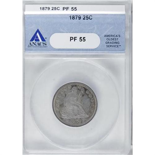 <B>1879 25C PR55 ANACS.</B></I> Population: 1 in 55, 266 finer (3/08).Census: 0 in 55, 241 finer (3/08).<BR><BR><B>Coin Engraver:</B> Christian Gobrecht<BR><BR><b>Shipping:</b> Coins & Currency (<a target="_blank" href="http://www.heritageauctions.com/common/shipping.php">view shipping information</a>)