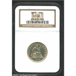 1879 25C PR62 NGC. Deeply reflective with a light hazy overlay on each side. Important notice: We expect to be auctioning lots at the rate of 200-250 per hour. Sometimes eBay Premier live bid software cannot keep up with that pace, so we strongly recommend that you place a realistic proxy bid now as insurance to avoid disappointment. Also please note that all Heritage/CAA lots purchased through eBay Premier carry a 20% Buyer's Premium. Please make sure you read the Terms and Conditions.