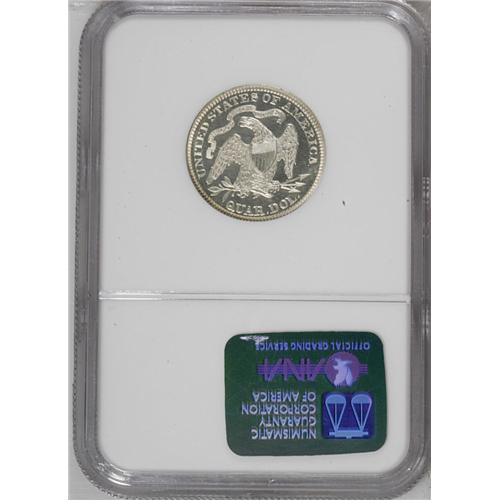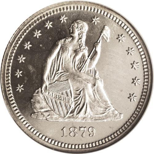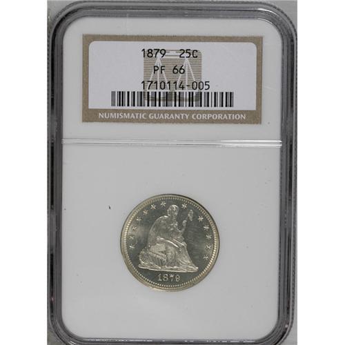 <B>1879<25C> PR66 NGC.</B></I> A subtle cameo contrast is evident between the mirrored fields and the chalky-white central devices, especially on the reverse although it is not designated on the NGC insert. A flashy, essentially untoned, high quality example of this scarcer date, which usually commands a premium due to the low number of business strikes of this year. Census: 17 in 66, 10 finer (6/06).