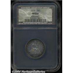 <table><tr><td><table><tr><td>1879 25C Proof, Polished, NCS. Type Two Reverse. Sharp and desirable as a proof issue, unfortunately someone wanted to "improve" on this coin's appearance by polishing each side. As a result, numerous hairlines are now visible. Electric-green color is seen at the borders. <BR><BR><B>Important notice:</B> Heritage usually auctions material at the rate of 200-250 lots per hour. On some occasions eBay Live bid software or the Internet may not be able to keep up with the pace of the auction. We recommend placing a realistic absentee bid now as insurance to avoid disappointment. Occasionally the auctioneer may eliminate or reject an eBay Live bid, and the auctioneer may also reopen a lot after the close of the eBay live bidding (usually because we missed an audience bid), and may reject your bid even if it shows you as the winning bidder. By bidding via eBay Live, you agree that Heritage may award the lot to another bidder at its sole discretion under the circumstances described above or any other reasonable circumstances. Since eBay bids are not shown to us until we open the lot on the floor, we treat those bids just like floor bids. In most cases the floor responds before the eBay bid is presented to us, due to Internet lag time, so for consistency we have made it a policy that floor bids are always considered first over tie eBay live bids. Also please note that all Heritage lots purchased through eBay Live carry a 20% Buyer's Premium. Please make sure you read the Terms and Conditions before you bid. <BR><BR><B>IMPORTANT ANNOUNCEMENT ABOUT RESERVES:</B> Heritage now divulges all reserves on its web site 7 days before every auction. If you want to know whether the reserve on this lot has been met, and if not, what the reserve amount is, please visit this lot page on the HeritageCoin.com web site, or email: bid@HeritageGalleries.com </span></font></td></tr></table></td></tr></table>