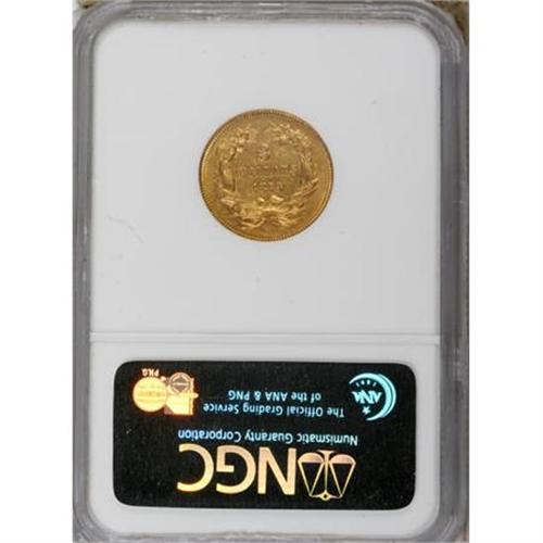 <B>1879 $3 AU55 NGC.</B></I> Apricot-gold and mint-green coloration adheres to minimally abrades surfaces. Traces of luster reside in the recessed areas, and the design elements are well defined. From a mintage of 3,000 business strikes.<BR><BR><b>Shipping:</b> Coins & Currency (<a target="_blank" href="http://www.heritageauctions.com/common/shipping.php">view shipping information</a>)