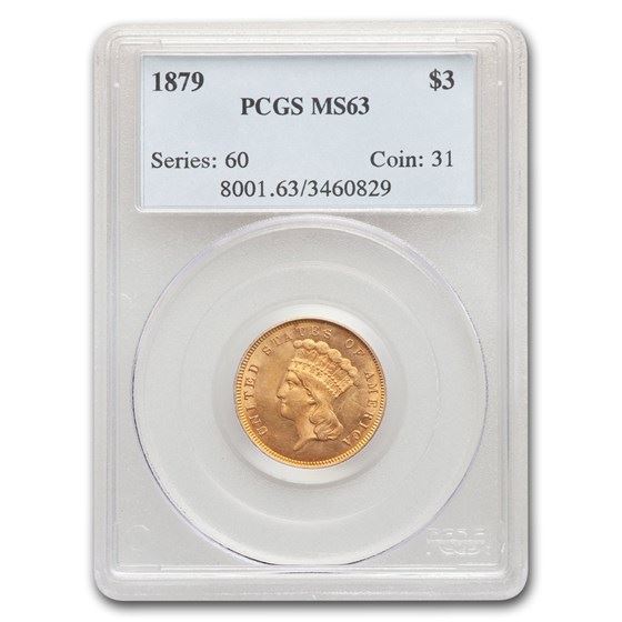 One piece 1879 $3 Gold Princess MS-63 PCGS