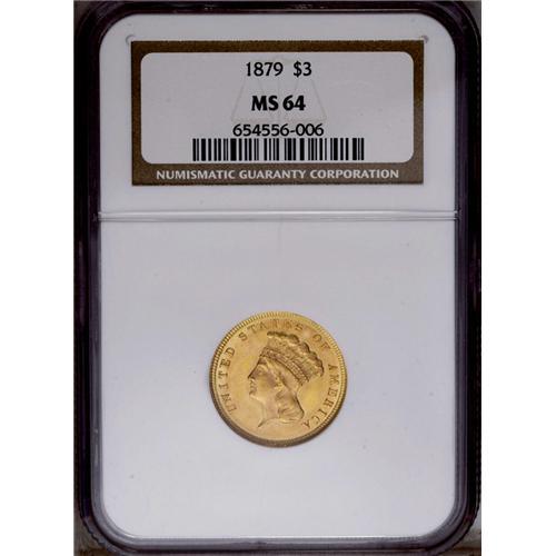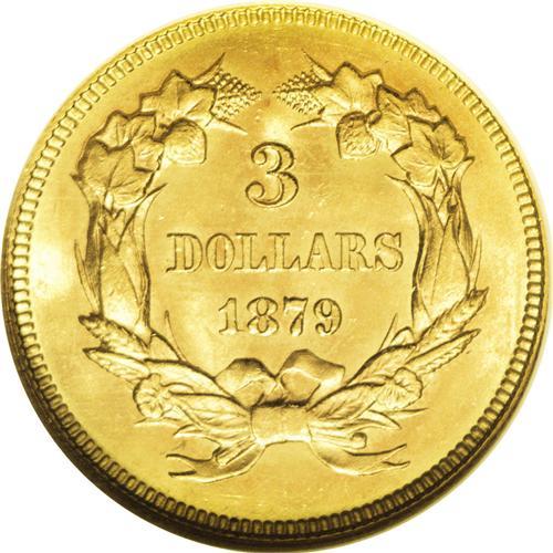 1879 $3 MS64 NGC. David Bowers and Douglas Winter, in 1879[$3] MS64 NGC.
