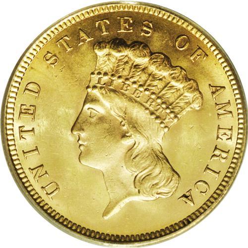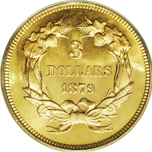 <B>1879 $3 MS64 PCGS.</B></I> In 1878, the Treasury made a final attempt to circulate the three dollar denomination. 82,304 pieces were struck, which was low by the standards of S-mint double eagles, but was high by the measure of the three dollar series. After 1878, commercial mintages of the denomination never exceeded 6,000 pieces. The 1879 has a typically low production of 3,000 pieces. This meticulously struck and lustrous near-Gem has delightfully smooth surfaces, especially on the central reverse, which is nearly immaculate. Because the three dollar denomination is a costly type, better dates within the series carry a relatively low premium over type, and provide better value relative to the "common" dates.<BR><BR><b>Shipping:</b> Coin/Currency (<a target="_blank" href="http://www.heritageauctions.com/common/shipping.php">view shipping information</a>)