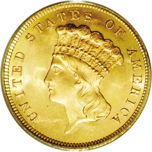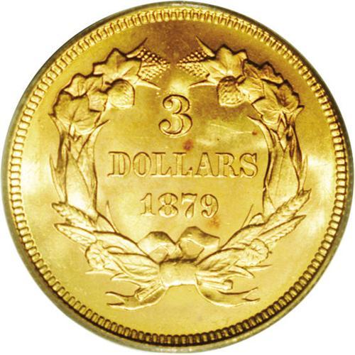 1879 $3 MS65 PCGS. A radiant, reddish-gold Gem with pr 1879[$3] MS65 PCGS.