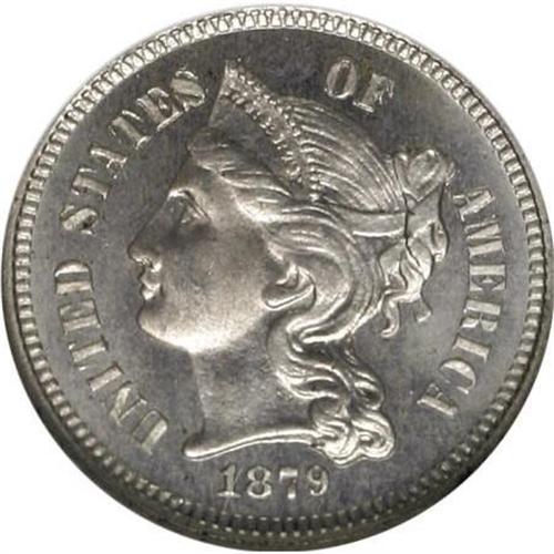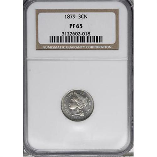 <B>1879 3CN PR65 NGC.</B></I> NGC Census: (290/230). PCGS Population (283/220). Mintage: 3,200. Numismedia Wsl. Price for NGC/PCGS coin in PR65: $550. (#3775)<BR><BR><B>Coin Engraver:</B> James B. Longacre<BR><BR><b>Shipping:</b> Coins & Currency (<a target="_blank" href="http://www.heritageauctions.com/common/shipping.php">view shipping information</a>)