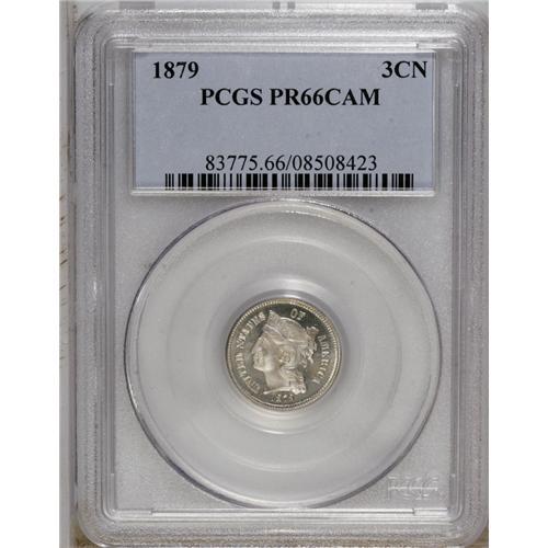 1879 3CN PR66 Cameo PCGS. A silver-white, untoned piec