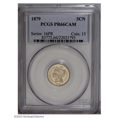 1879 3CN PR66 Cameo PCGS. Lightly toned and sharply st 1879[3CN] PR66 Cameo PCGS.