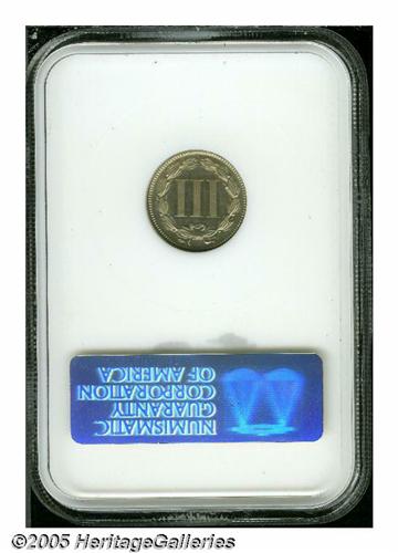 <B>1879<3CN> PR66 NGC.</B></I> Sharply struck and seemingly pristine, with beautiful pale-green and creamy-beige coloration. Typical mild reflectivity is seen in the fields.