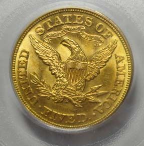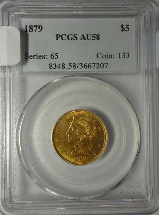1879 $5 LIBERTY GOLD PCGS AU-58