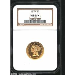 <TABLE cellSpacing=0 cellPadding=0 width="100%" bgColor=#000000 border=0><TBODY><TR><TD width="100%"><TABLE cellSpacing=1 cellPadding=3 width="100%" border=0><TBODY><TR><TD width="100%" bgColor=#79735c><FONT face=arial color=#ffffff size=3><B>Description</B> </FONT></TD></TR><TR><TD width="100%" bgColor=#ffffff><FONT face=arial size=2><B>1879 $5 MS64 * NGC.</B></I> The production of Philadelphia Mint Half Eagles was minimal between 1862 and 1877, since gold coins did not circulate except in the far West. Mintages picked up in 1878 and 1879, once equality between paper money and gold coin was achieved. However, the huge deliveries of 1880 to 1882 were yet to come, and the 1879 is many times scarcer in Uncirculated grades than those subsequent issues. Decades of careless storage have further depleted the supply of near-Gems. This is an attractive piece with unusual semi-prooflike luster and relatively unmarked surfaces. Faint roller marks (as made) on the forehead and right obverse field detract little from the eye appeal. While NGC has certified nine examples at the MS64 level, only the present coin has merited a star designation, and none have been certified finer. </FONT></TD></TR></TBODY></TABLE></TD></TR></TBODY></TABLE><BR><A name=PricesRealized></A><TABLE cellSpacing=0 cellPadding=0 width="100%" bgColor=#000000 border=0><TBODY><TR><TD width="100%"><TABLE cellSpacing=1 cellPadding=3 width="100%" border=0><TBODY><TR><TD width="100%" bgColor=#79735c><A name=PR><FONT face=arial color=#ffffff size=3><B>Previous Prices from Heritage Auctions</B> </FONT></A></TD></TR><TR><TD bgColor=#f6f6ed><TABLE cellSpacing=0 cellPadding=0 width="100%" border=1><TBODY><TR><TD align=middle width="33%"><B>Date</B></TD><TD align=middle width="33%"><B>Service</B></TD><TD align=middle width="33%"><B>Price</B></TD></TR><TR bgColor=whitesmoke><TD width="33%"><B>01/01/1994</B></TD><TD width="33%">PCGS</TD><TD width="33%">$4,620.00</TD></TR><TR bgColor=whitesmoke><TD width="33%"><B>11/23/2002</B></TD><TD width="33%">NGC</TD><TD width="33%">$3,105.00</TD></TR></TBODY></TABLE></TD></TR><TR><TD bgColor=#ffffff><FONT face=arial size=1 ?>PLEASE NOTE: All prices realized reflect the final hammer price PLUS the buyer's premium in auctions that charge a buyer's premium. Each item has a notation at the top of the listing indicating whether that lot included a buyer's premium. Example: A item that sells with a final hammer price of $100 and a 20% buyer's premium will display with a price realized of $120. All information listed is intended to be as accurate as possible, but errors are possible. Please use this guide carefully and inform us of any inaccuracies. </FONT></TD></TR></TBODY></TABLE></TD></TR></TBODY></TABLE><BR><TABLE cellSpacing=0 cellPadding=0 width="100%" bgColor=#000000 border=0><TBODY><TR><TD width="100%"><TABLE cellSpacing=1 cellPadding=3 width="100%" border=0><TBODY><TR><TD width="100%" bgColor=#79735c colSpan=6><FONT face=arial color=#ffffff size=3><B>Price Guide*</B> </FONT></TD></TR><TR bgColor=#f6f6ed><TD align=middle><B>Grade</B> </TD><TD align=middle><B>Coin World<BR>(Trends)</B> </TD><TD align=middle><B>Numismedia<BR>Retail</B> </TD><TD align=middle><B>Numismedia<BR>Wholesale</B> </TD><TD align=middle><B>Coin<BR>Universe</B> </TD><TD align=middle><B>Heritage<BR>Value Index</B> </TD></TR><TR bgColor=#ffffff><TD align=middle>63</TD><TD align=right>$1,700.00</TD><TD align=right>---</TD><TD align=right>$1,400.00</TD><TD align=right>$1,450.00</TD><TD align=right>$1,281.25</TD></TR><TR style="FONT-WEIGHT: bold" bgColor=#cccfdd><TD align=middle>64</TD><TD align=right>$3,600.00</TD><TD align=right>---</TD><TD align=right>$3,750.00</TD><TD align=right>$4,875.00</TD><TD align=right>$3,159.38</TD></TR><TR bgColor=#ffffff><TD align=middle>65</TD><TD align=right>---</TD><TD align=right>---</TD><TD align=right>---</TD><TD align=right>$13,500.00</TD><TD align=right>$8,730.00</TD></TR><TR bgColor=#ffffff><TD colSpan=6><FONT size=1>*All information listed is intended to be as accurate as possible, but errors are possible. No item may be returned or refused based on this information which is provided as a service to our customers. You should contact each pricing source directly to determine the accuracy of this information. </FONT></TD></TR></TBODY></TABLE></TD></TR></TBODY></TABLE><BR><TABLE cellSpacing=0 cellPadding=0 width="100%" bgColor=#000000 border=0><TBODY><TR><TD width="100%"><TABLE cellSpacing=1 cellPadding=3 width="100%" border=0><TBODY><TR><TD width="100%" bgColor=#79735c><FONT face=arial color=#ffffff size=3><B>Population Guide</B> </FONT></TD></TR><TR bgColor=#ffffff><TD align=middle><!-- Begin Output of Population Grid--><TABLE cellSpacing=0 cellPadding=0 width="100%" border=0><TBODY><TR><TD vAlign=center><TABLE cellSpacing=0 width="100%" border=1 cellsadding="3"><TBODY><TR><TD vAlign=center><TABLE cellSpacing=0 cellPadding=3 width="100%" border=1><TBODY><TR><TD vAlign=center align=middle bgColor=#f0f1e8 colSpan=2 <CENTER><FONT face=Arial size=2><B>PCGS Pop </B></FONT><CENTER></CENTER></TD><TD vAlign=center align=middle bgColor=#f0f1e8 colSpan=2><CENTER><FONT face=Arial size=2><B>NGC Pop</B></CENTER></FONT></TD></TR><TR><TD vAlign=center><FONT face=Arial size=2>(64)</FONT> </TD><TD vAlign=center align=right><FONT face=Arial size=2>4</FONT> </TD><TD vAlign=center><FONT face=Arial size=2>(64)</FONT> </TD><TD vAlign=center align=right><FONT face=Arial size=2>9</FONT> </TD></TR><TR><TD vAlign=center><FONT face=Arial size=2>(>64)</FONT> </TD><TD vAlign=center align=right><FONT face=Arial size=2>3</FONT> </TD><TD vAlign=center><FONT face=Arial size=2>(>64)</FONT> </TD><TD vAlign=center align=right><FONT face=Arial size=2>0</FONT> </TD></TR></TBODY></TABLE></TD></TR></TBODY></TABLE></TD></TR></TBODY></TABLE><!-- End Output of Population Grid--> Important notice: Heritage usually auctions material at the rate of 200-250 lots per hour. On some occasions eBay Live bid software or the Internet may not be able to