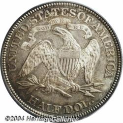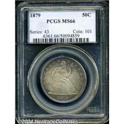 <B>1879<50C> MS66 PCGS.</B></I> The majority of survivors among the half dollar coinage from 1879 through 1890 are Proof examples, with high-quality business strikes being quite elusive. Very sharply struck with satiny luster beneath exquisite grayish-brown toning, accented by pink, blue, and iridescent toning along the obverse border. The surfaces are pristine, with exceptional eye appeal. Population: 31 in 66, 15 finer (3/04). <BR><BR><B>Important notice:</B> Heritage usually auctions material at the rate of 200-250 lots per hour. On some occasions eBay Live bid software or the Internet may not be able to keep up with the pace of the auction. We recommend placing a realistic absentee bid now as insurance to avoid disappointment. Occasionally the auctioneer may eliminate or reject an eBay Live bid, and the auctioneer may also reopen a lot after the close of the eBay live bidding (usually because we missed an audience bid), and may reject your bid even if it shows you as the winning bidder. By bidding via eBay Live, you agree that Heritage may award the lot to another bidder at its sole discretion under the circumstances described above or any other reasonable circumstances. Since eBay bids are not shown to us until we open the lot on the floor, we treat those bids just like floor bids. In most cases the floor responds before the eBay bid is presented to us, due to Internet lag time, so for consistency we have made it a policy that floor bids are always considered first over tie eBay live bids. Also please note that all Heritage lots purchased through eBay Live carry a 20% Buyer's Premium. Please make sure you read the Terms and Conditions before you bid. </span></font></tr></table></td></tr></table>