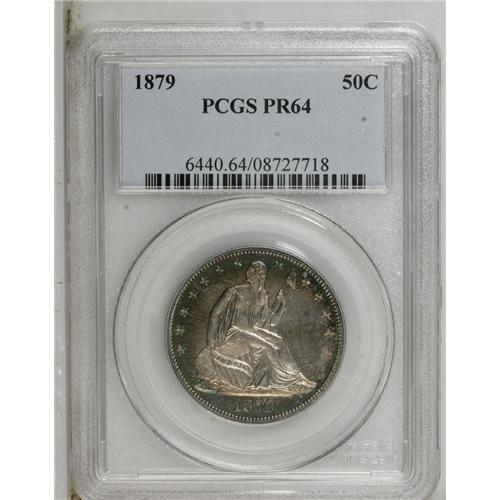 <B>1879 50C PR64 PCGS.</B></I> Type One Reverse. Bright proof surfaces reveal peripheral cobalt-blue, lavender, and golden-tan toning. The design features are exquisitely impressed, including bold definition in Liberty's hair. A handful of flecks are visible in the right obverse field. Population: 79 in 64, 38 finer (11/06).<BR><BR><b>Shipping:</b> Coin/Currency (<a target="_blank" href="http://www.heritageauctions.com/common/shipping.php">view shipping information</a>)