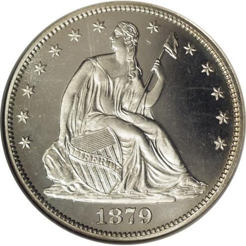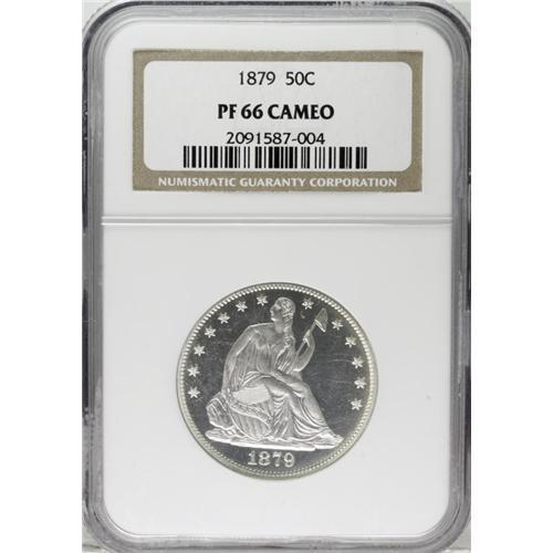 <B>1879 50C PR66 Cameo NGC.</B></I> Type One Reverse. An exceptionally reflective and practically untoned Premium Gem. The frost is mild on the obverse devices, but the contrast is undeniable, and the effect only intensifies on the sharply struck reverse. An appealing piece from an estimated original mintage of 1,100 proofs. Census: 5 in 66 Cameo, 6 finer (12/06).<BR><BR><b>Shipping:</b> Coin/Currency (<a target="_blank" href="http://www.heritageauctions.com/common/shipping.php">view shipping information</a>)