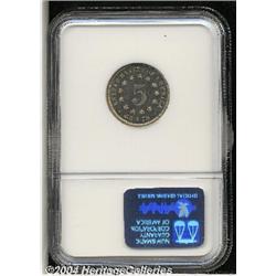 <B>1879<5C> PR64 NGC.</B></I> Original pearl-gray patina embraces this needle-sharp Shield Nickel. A pinpoint spot at 9 o'clock appears to be accompanied by a few faint marks. Proofs are in demand due to the scarcity of their Mint State counterparts. <BR><BR><B>Important notice:</B> Heritage usually auctions material at the rate of 200-250 lots per hour. On some occasions eBay Live bid software or the Internet may not be able to keep up with the pace of the auction. We recommend placing a realistic absentee bid now as insurance to avoid disappointment. Occasionally the auctioneer may eliminate or reject an eBay Live bid, and the auctioneer may also reopen a lot after the close of the eBay live bidding (usually because we missed an audience bid), and may reject your bid even if it shows you as the winning bidder. By bidding via eBay Live, you agree that Heritage may award the lot to another bidder at its sole discretion under the circumstances described above or any other reasonable circumstances. Since eBay bids are not shown to us until we open the lot on the floor, we treat those bids just like floor bids. In most cases the floor responds before the eBay bid is presented to us, due to Internet lag time, so for consistency we have made it a policy that floor bids are always considered first over tie eBay live bids. Also please note that all Heritage lots purchased through eBay Live carry a 20% Buyer's Premium. Please make sure you read the Terms and Conditions before you bid.